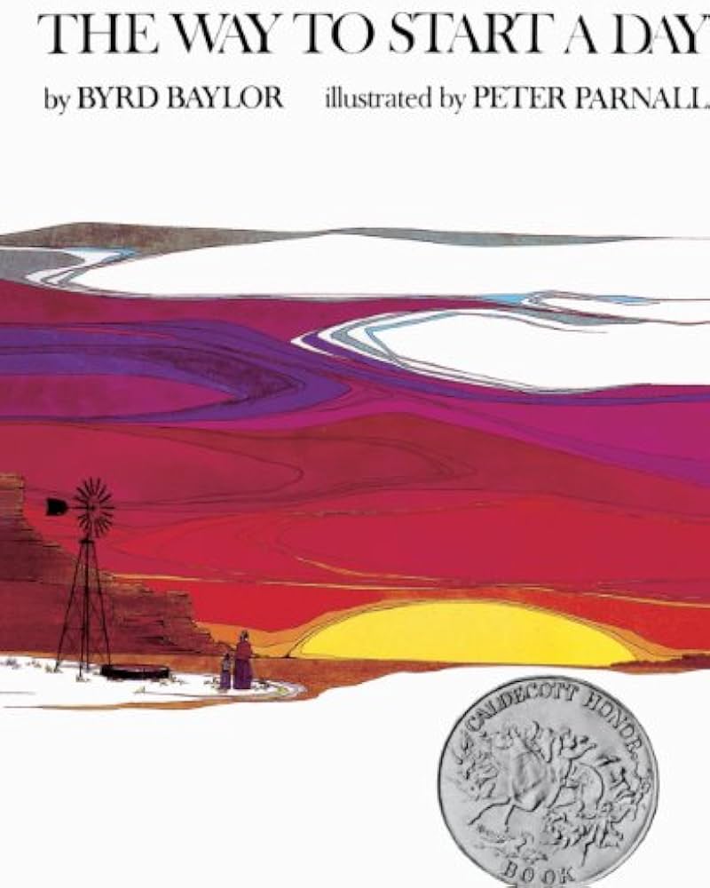 The illustrations are gorgeous (and quite different from most children's picture books). There's a page that shows Indigenous people lifting their baby to greet the sun; it says, "And high on a mesa ledge in Arizona they were holding a baby toward the sun. They were speaking the child's new name so that the sun would hear and know that child. It had to be sunrise. And it had to be that first sudden moment. That's when all power of life is in the sky." Truly beautiful books!