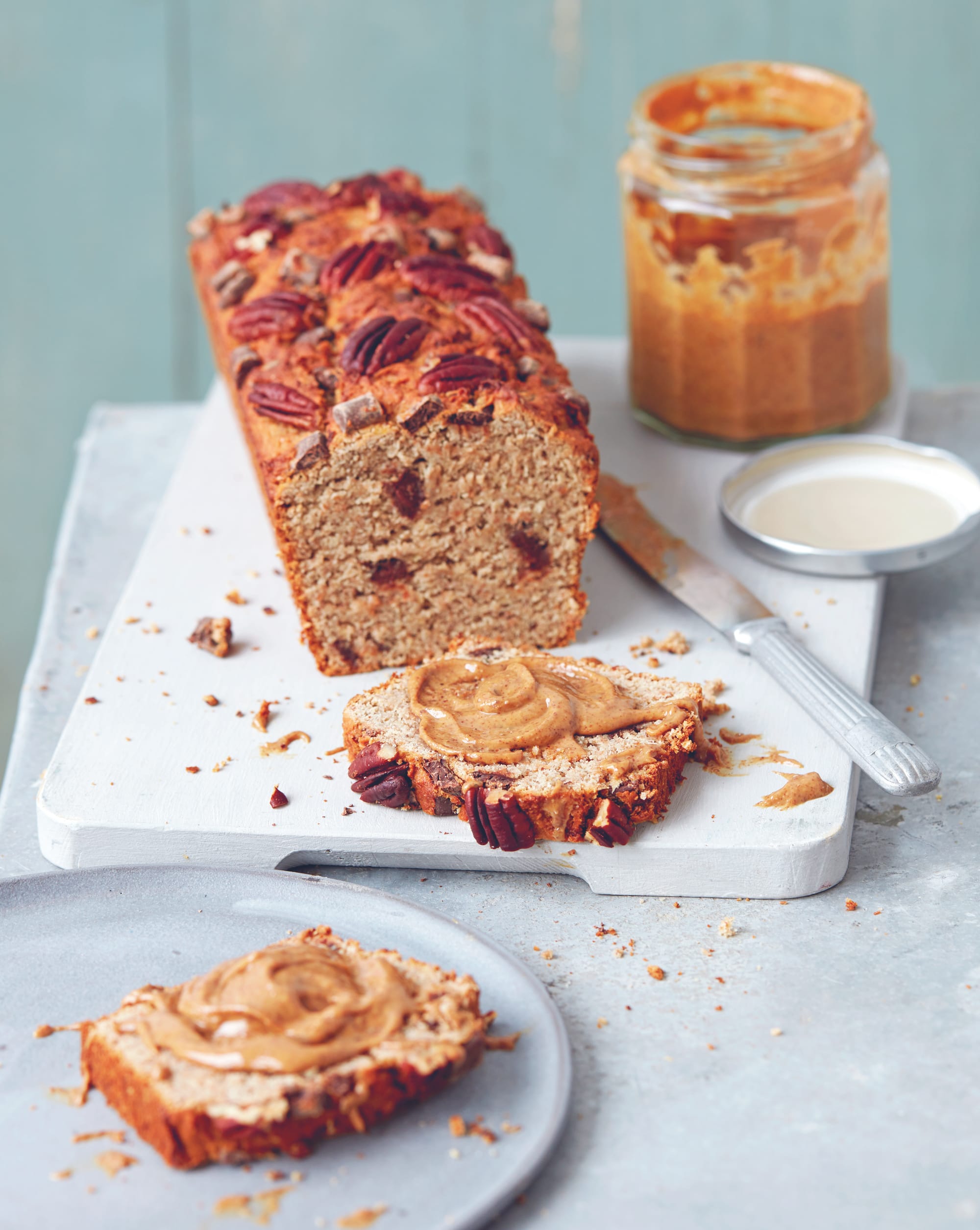 - 12 x 23-cm/9 x 5-inch loaf pan, greased with coconut oil